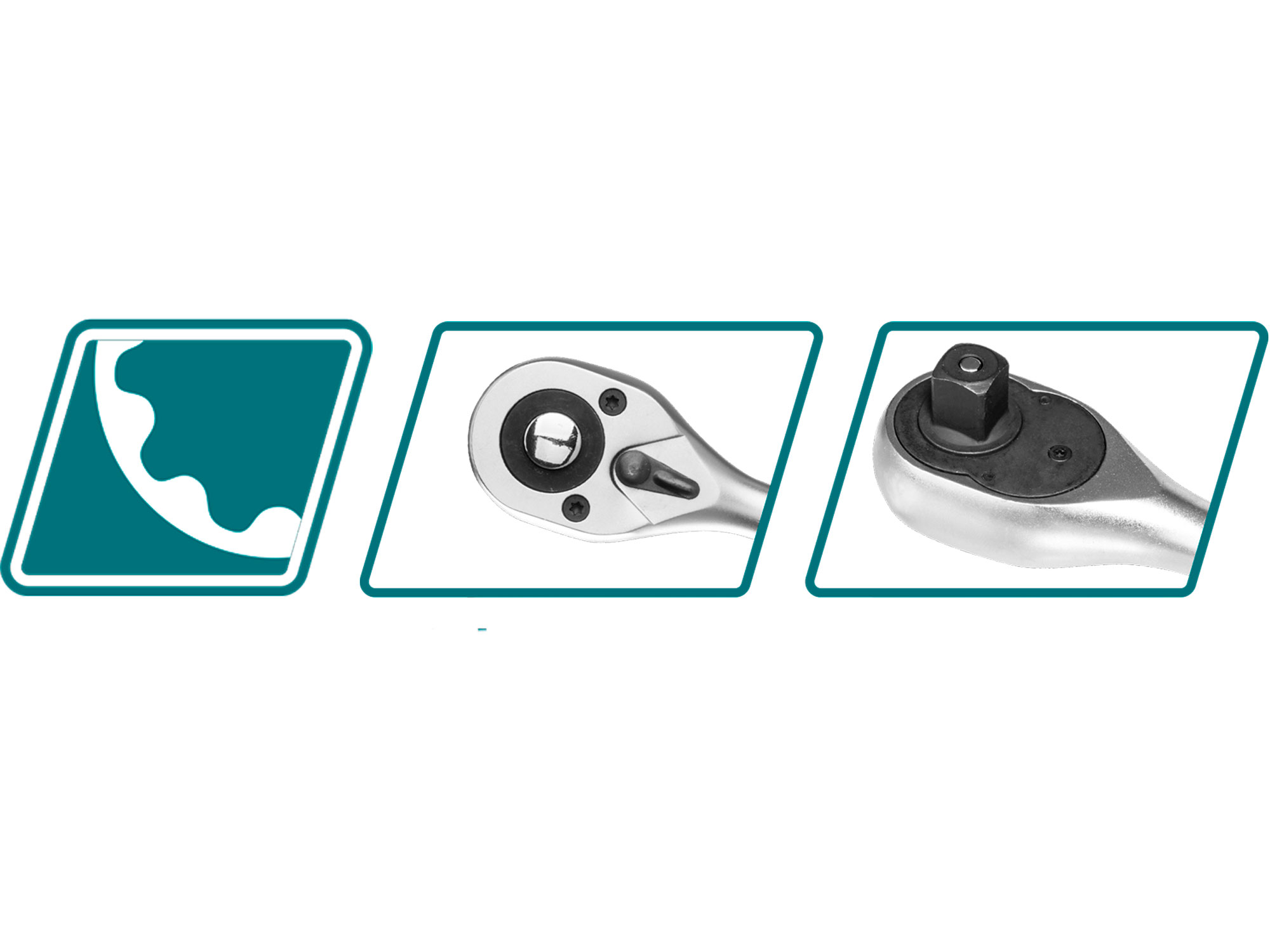 Ein besonderes Merkmal dieser Ratsche sind ihre 45 Zähne. Die Anzahl der Zähne bestimmt, wie fein die Ratsche eingestellt werden kann. Eine höhere Zahnzahl bedeutet, dass die Ratsche in engeren Bereichen verwendet werden kann, da sie für eine volle Umdrehung weniger Bewegung benötigt.