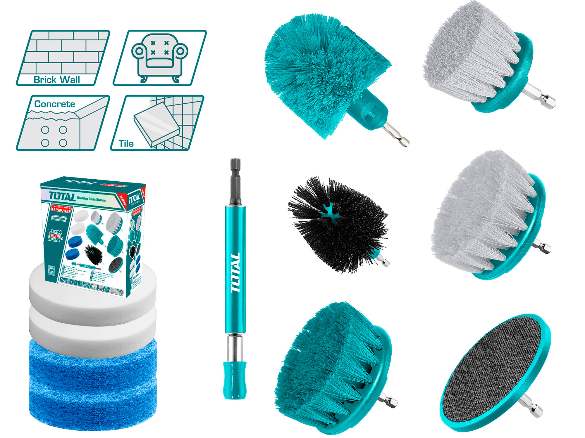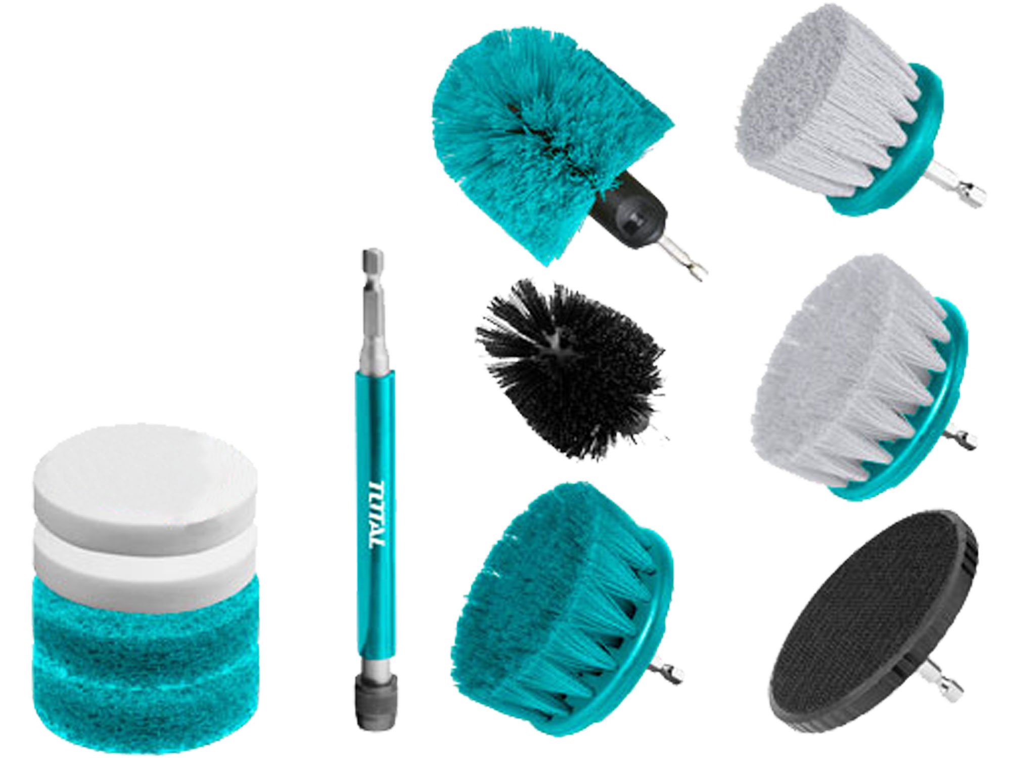 Zusätzlich zu den Bürsten enthält das Set auch eine 360-Grad-Schleifborstenbürste, die ideal für das Entfernen von hartnäckigem Schmutz und Ablagerungen ist. Ein 6-Zoll-Verlängerungshalter ist ebenfalls enthalten, um schwer erreichbare Stellen zu reinigen.