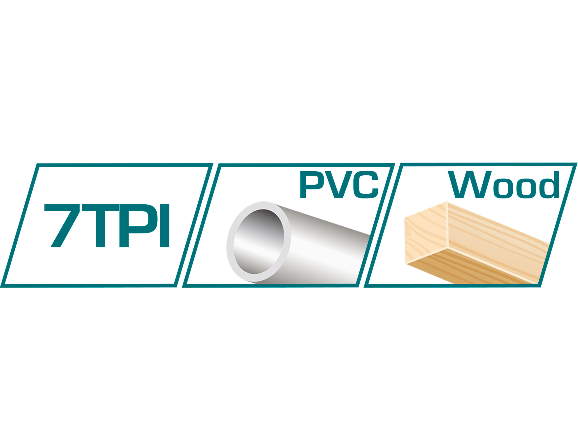 Die Säge hat 7 Zähne pro Zoll (TPI), was sie ideal für das Schneiden von verschiedenen Materialien macht. Je höher die TPI-Zahl, desto feiner ist der Schnitt, den die Säge erzeugt.
