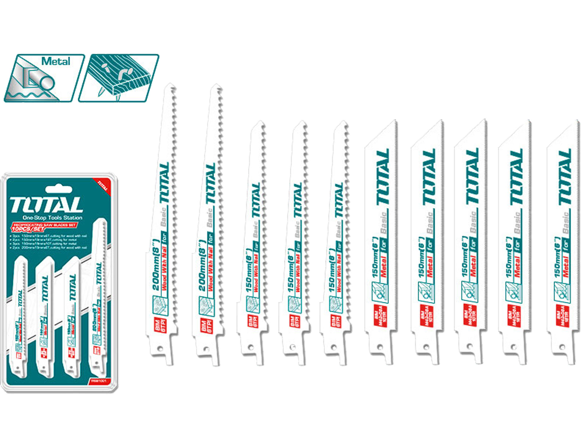 Dieses 10-teilige Schneidmesserset besteht aus verschiedenen Blättern, die für verschiedene Materialien geeignet sind. Es enthält 3 Stück 150 x 19 x 1,2 x 6 Zähne Holzschneideblätter mit Nägeln, ideal für das Schneiden von Holz, das Nägel enthält, ohne die Klingen zu beschädigen. Es enthält auch 2 Stück 150 x 19 x 0,92 x 18 Zähne Metallschneideblätter und 3 Stück 150 x 19 x 0,92 x 10 Zähne Metallschneideblätter, die perfekt zum Schneiden von Metallmaterialien sind. Schließlich enthält das Set 2 Stück 200 x 19 x 1,2 x 6 Zähne Holzschneideblätter mit Nägeln, für größere Holzschnittprojekte.