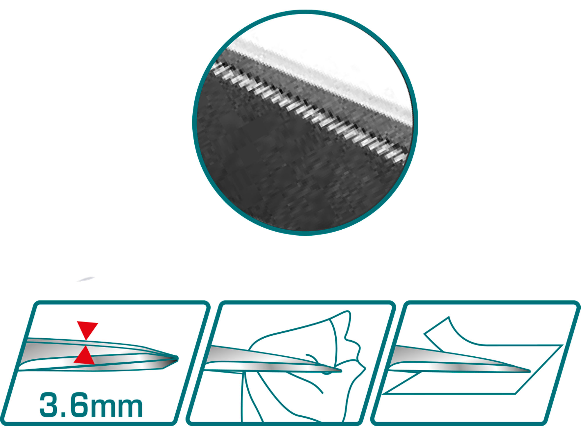 Das einzigartige Federdesign ermöglicht eine einfache und mühelose Handhabung, während das ergonomische Design den Griff optimiert und für eine komfortable und sichere Handhabung sorgt. Der Griff ist über die gesamte Länge mit Edelstahl verstärkt, was die Schere noch robuster und widerstandsfähiger macht.