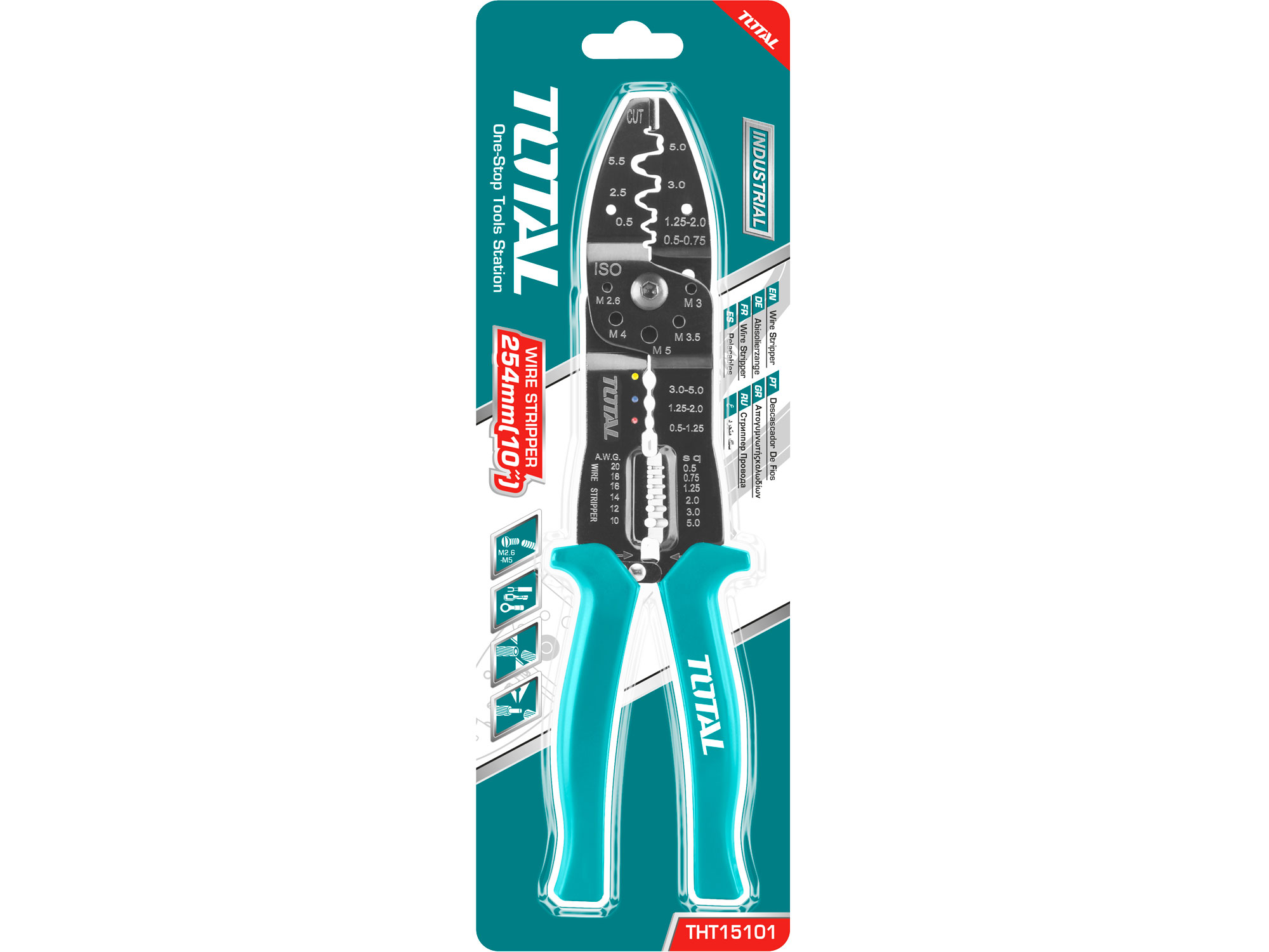 Mit der Total Abisolier- und Schneidezange haben Sie ein verlässliches Werkzeug, das Ihnen hilft, Ihre Arbeit effizient und professionell zu erledigen. Ideal für Elektriker, Installateure und andere Fachleute, die regelmäßig mit Drähten und Kabeln arbeiten.