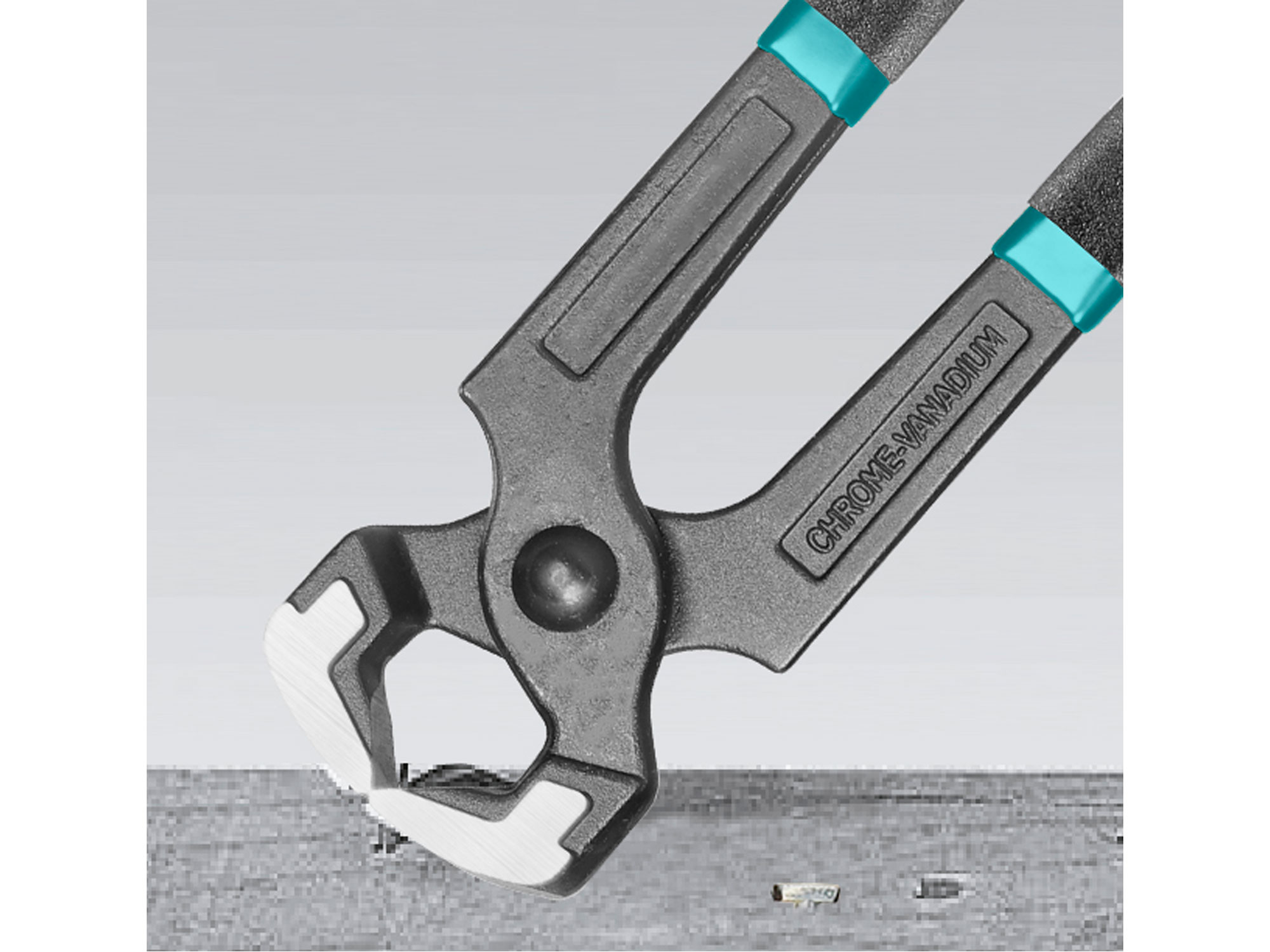 Die Backen dieses Frontschneiders sind aus hochwertigem CrV-Stahl gefertigt, der für seine Haltbarkeit und Langlebigkeit bekannt ist. Sie sind induktionsgehärtet, um sicherzustellen, dass sie auch unter den härtesten Bedingungen standhalten können. Die Seiten der Backen sind poliert, um zu verhindern, dass Materialien an ihnen haften bleiben.