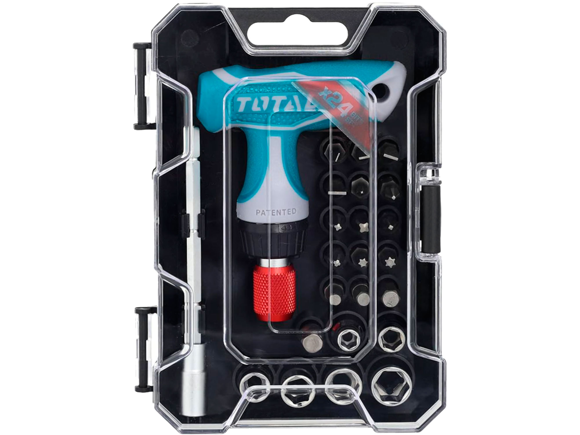 Total Ratschenschraubendreher mit T-Griff und Spitzen, 24er-Set, CrV