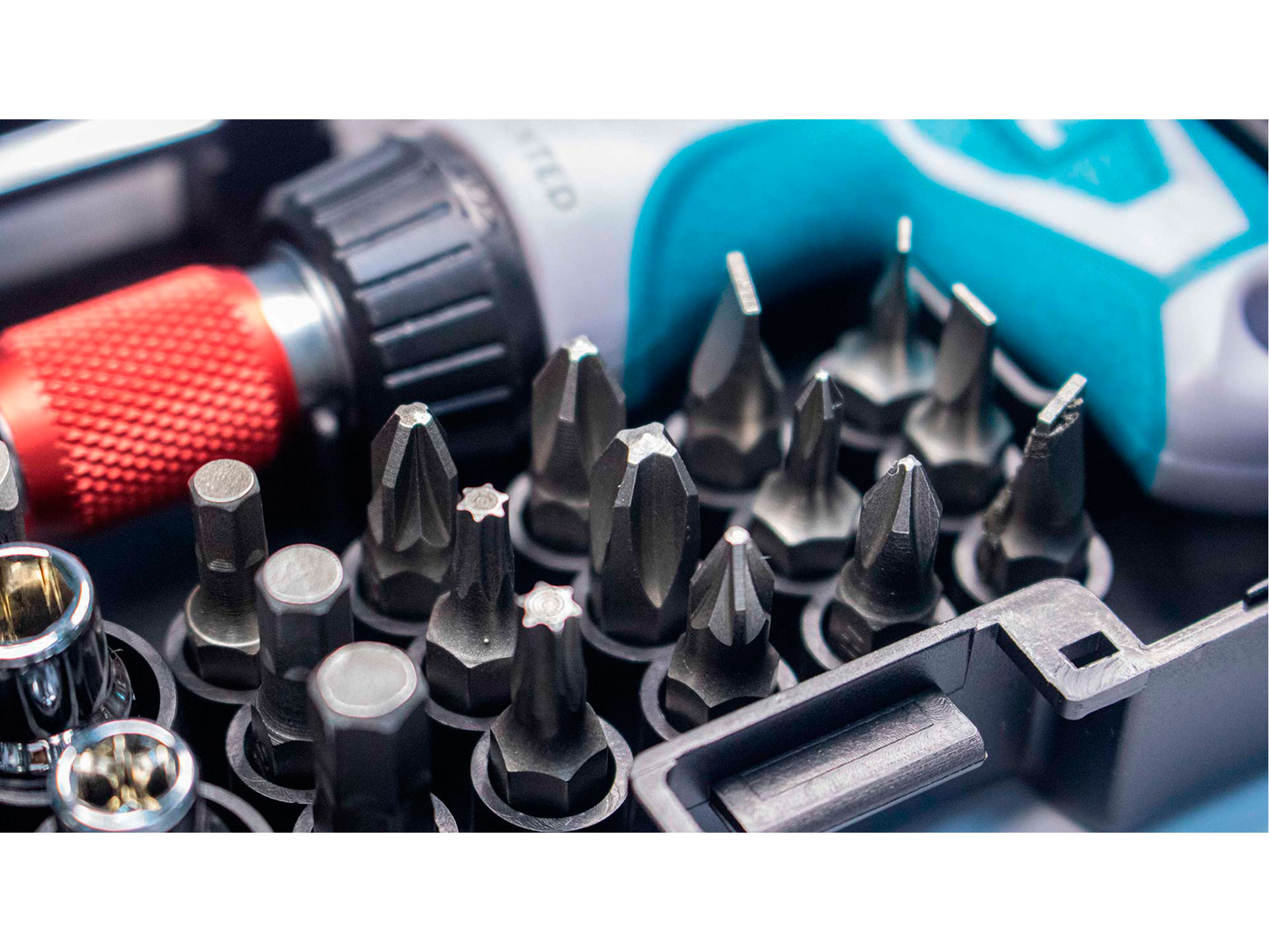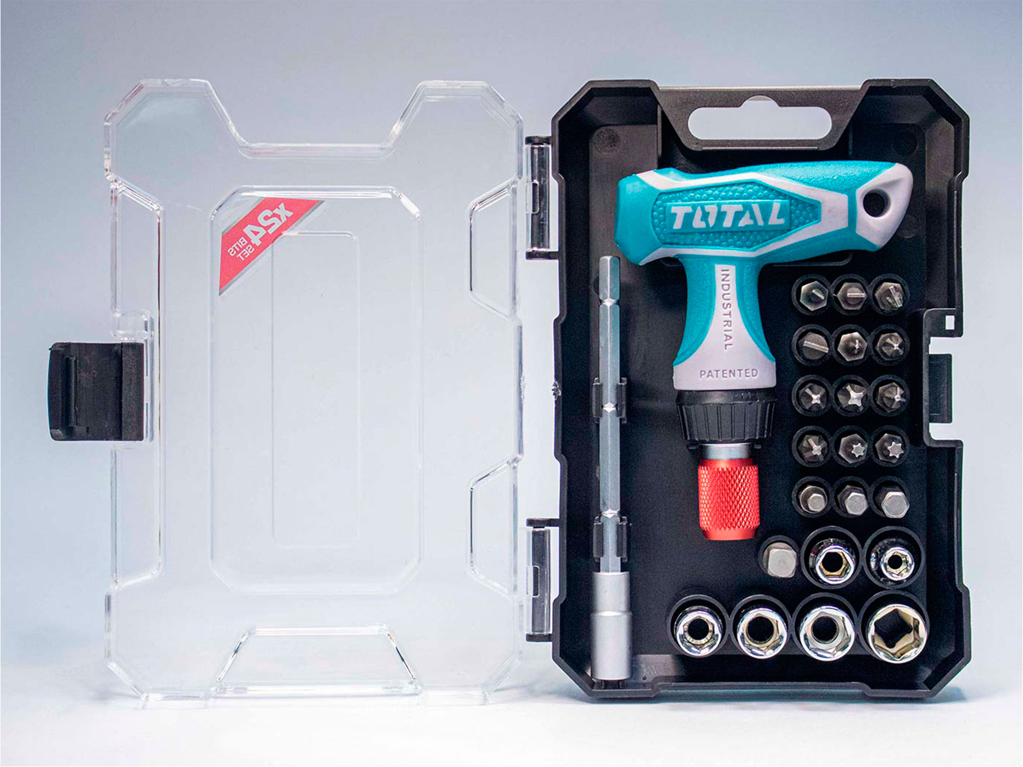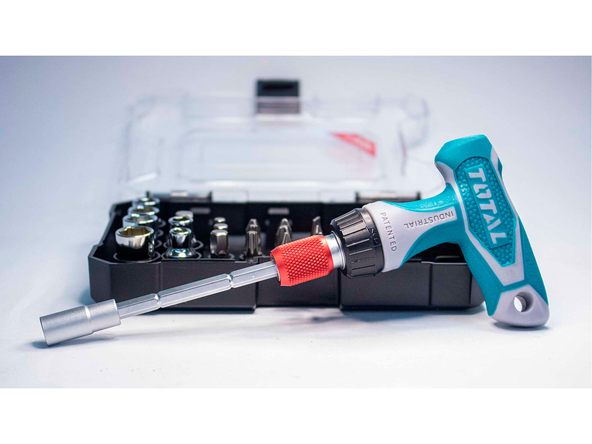 Produktinformationen "Total Ratschenschraubendreher mit T-Griff und Spitzen, 24er-Set, CrV"